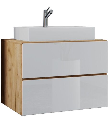 EBUY24 - vcm 2 pz Lavabo lavabo lavabo larghezza armadio inferiore 60 cm arredo bagno set con cassetti Lendas (rovere miele / bianco)
