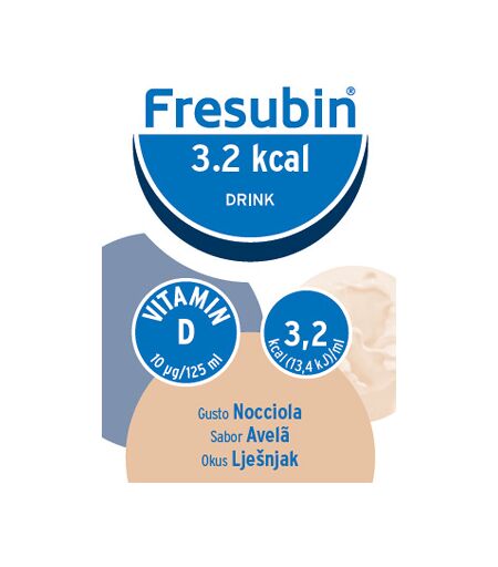Fresubin 3.2 kcal DRINK - Descrizione Alimento a fini medici speciali. Alimentazione enterale orale nutrizionalmente completa, ad elevato contenuto calorico (3,2 kcal/ml), proteico (energia 20%) e di vitamina D. A basso contenuto di fibre. Indicato per la gestione dietetica di pazienti con o a risc… ...