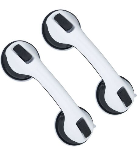 RELAXDAYS Maniglia con Ventosa, Set da 2, per 70 kg, Supporto Vasca e Doccia da Bagno, Anziani e Disabili, Bianco Nero -