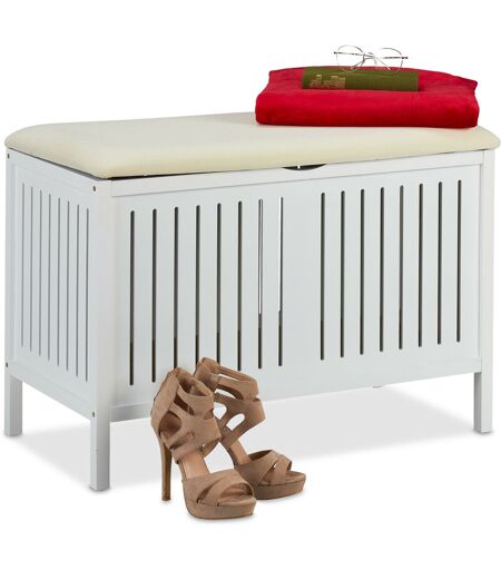 RELAXDAYS - Cassapanca, Panca Contenitore con Seduta Imbottita, 80 l, Design Rustico, Portaoggetti, 56 x 78 x 39, Bianco