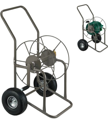RELAXDAYS Carrello Avvolgitubo da Giardino, Carrellino Mobile per Acqua in Metallo, 2 Rotelle, Tubi Lunghi 80 m, Marrone -