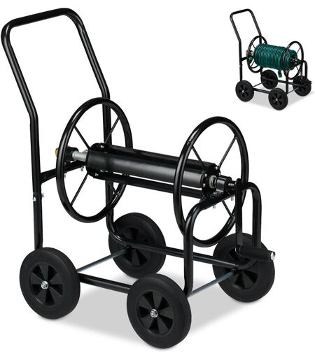RELAXDAYS Carrello Avvolgitubo da Giardino, Carrellino Mobile per Acqua in Metallo, 4 Rotelle, Tubi Lunghi 60 m, Marrone -