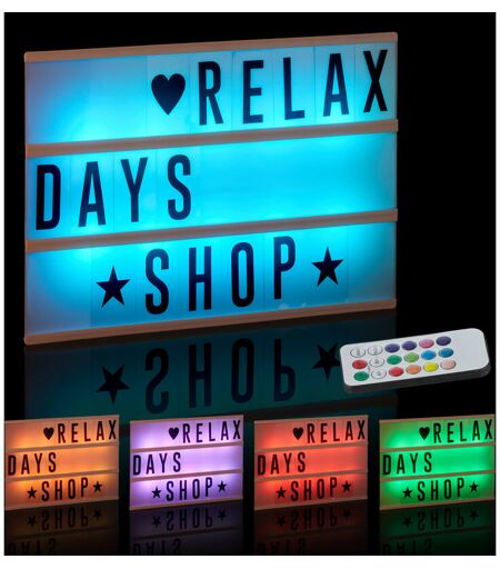 RELAXDAYS Light Box Cambia Colore, Insegna Luminosa, 85 Lettere & Simboli, 3 Righe, a Batterie, Lampada, Cornice, bianco -
