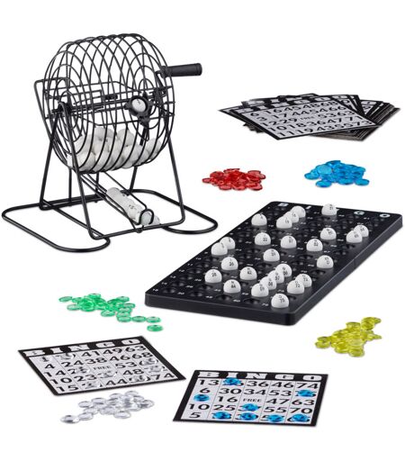 RELAXDAYS Tombola Automatica, Gioco del Bingo con Cesto in Metallo, Giochi di Società, 20x17,5x21,5 cm,Kit Completo,nero -