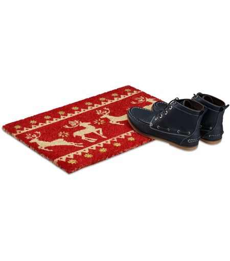 RELAXDAYS Zerbino Natalizio in Cocco, 60x40 cm, Decorazioni con Renne e Stelle, in Fibra di Cocco e Gomma, Multicolore -