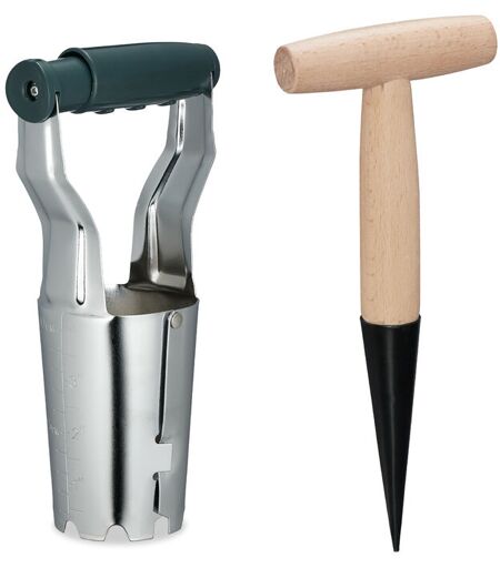 RELAXDAYS Strumento Piantabulbi, 2 Attrezzi Pianta Bulbi di Fiori, Piantatore Piantine Orto, Metallo, Legno, Multicolore -