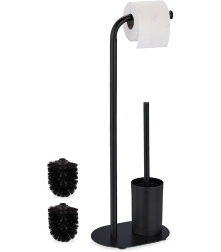 RELAXDAYS Piantana Portarotolo e Portascopino, hlp 64,5x23x17 cm Porta Scopino e Carta Igienica da Bagno, in Ferro, Nero -