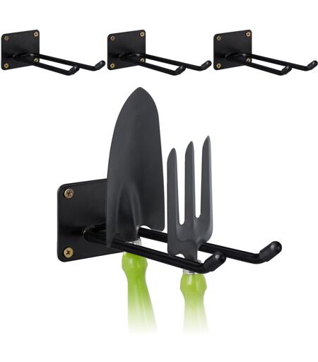 RELAXDAYS - Gancio Porta Attrezzi da Giardino, Set da 4, l: 24 cm, Appendi Accessori Giardinaggio e Officina, Nero