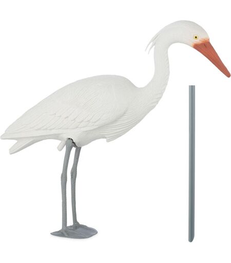 RELAXDAYS Figura Decorativa a Forma di Airone, Spaventa Passeri e Piccioni, Con Asta, per Laghetto in Giardino, Bianco -