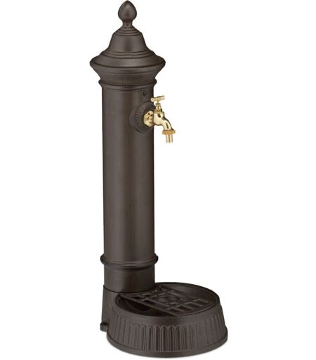 RELAXDAYS Fontana da Giardino in Stile Antico, Fontanella a Colonna con Rubinetto e Vaschetta, hlp: 72x26x31 cm, Marrone -