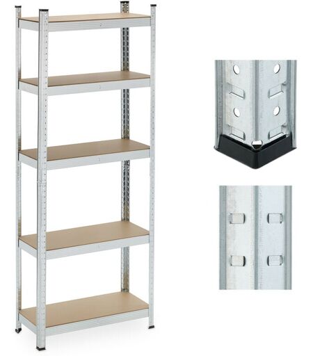 RELAXDAYS Scaffale in Acciaio, hlp 180 x 70x 30 cm, 5 Ripiani ad Alta Portata 500 kg, per Garage e Cantina, Argentato -