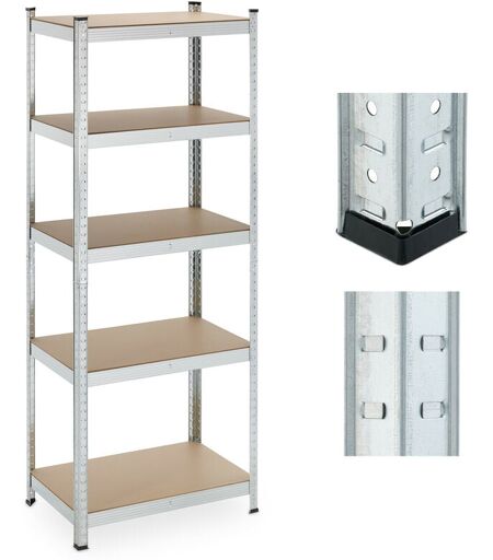 RELAXDAYS Scaffale in Acciaio, hlp 180 x 70x 45 cm, 5 Ripiani ad Alta Portata 500 kg, per Garage e Cantina, Argentato -
