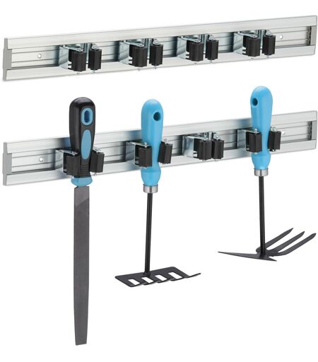 RELAXDAYS Porta Utensili da Parete, Set da 2 Portattrezzi con 4 Ganci, Giardino e Garage, Barra in Alluminio, Argentato -