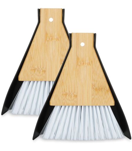 RELAXDAYS Kit Raccogli Briciole, Set da 2 Scopette e Palette per Tavolino, Cucina e Campeggio, da Appendere, Nero Bianco, bambù -