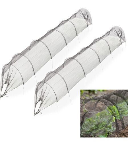Con questi tunnel per piante in set da 2 puoi proteggere efficacemente i fiori e le colture del tuo giardino dai danni indesiderati di uccelli o insetti. La rete impedisce a questi ospiti indesiderati di rosicchiare le tue verdure o la frutta e allo stesso tempo permette all'aria di raggiungere le piantine. Puoi chiudere le aperture in modo individuale e fissandole al suolo con i picchetti in dotazione, così che si possa regolare l'entrata dell'aria. Piccola serra per orto in dettaglio - Lunghezza con il telo totalmente teso: 300 cm ca. - Misure tunnel H x L: 50 x 70 cm ca. - Peso: 1,6 kg ca. ciascuno - Materiale: plastica, ferro - Colore: nero Mini serra a tunnel con archi e picchetti - Ideale come protezione contro attacchi di parassiti e uccelli - Per godere dei frutti del proprio orto biologico e privo di pesticidi - Montaggio facile e veloce grazie al telo premontato - Il tessuto a maglia stretta permeabile permette il passaggio dell'aria - Pratico set da 2 per avere un tunnel ...