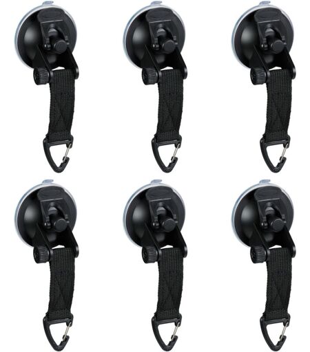 RELAXDAYS - Gancio a Ventosa, Set di 6, per Campeggio, Camper, Auto, Super Resistente, 2 kg, per Bagno e Cucina, Nero