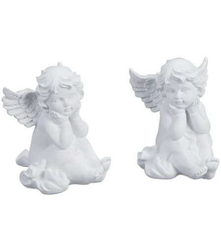 RELAXDAYS Statuetta Angelo Seduto, Set da 2, Statua Commemorativa Resistente al Gelo, per Giardino, Poliresina, Bianco -