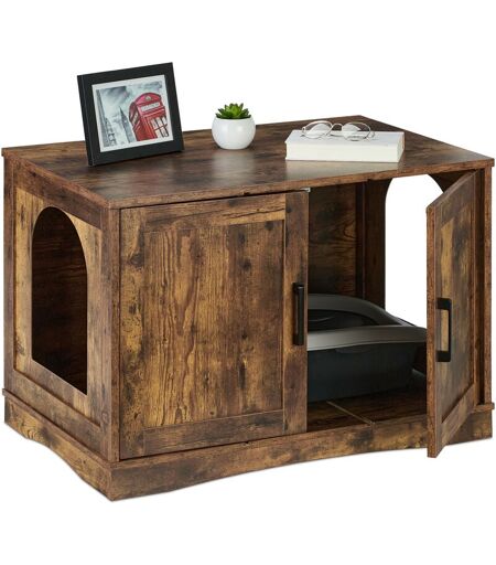 RELAXDAYS - Mobile Lettiera per Gatti, Armadietto con 2 Porte Ingresso Aperto, 50x75,5x50 cm, Casetta per Mici, Marrone