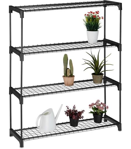 RELAXDAYS Scaffale Porta Piante, 4 ripiani Portapiante in Vaso, Fiori e Erbe, Acciaio e Plastica, hlp 106x91x28 cm, Nero -