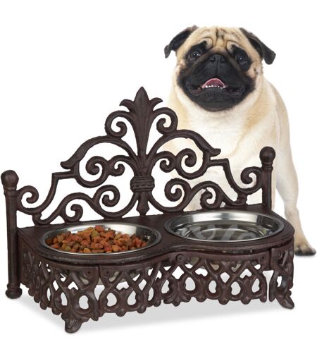 RELAXDAYS 4x Supporto Ciotole per Cani, Stile Antico in Ghisa, Set di Scodelle Rimovibili Acciaio Inox da 0,3 l Ciascuna, Marrone