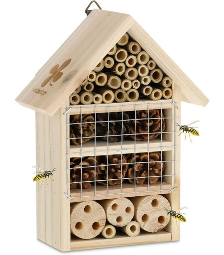 RELAXDAYS Hotel per Insetti, Casa per Api e Coccinelle, Legno d'Abete, Bambù, Pigne, Giardino, hlp 24x18x9 cm, Naturale -