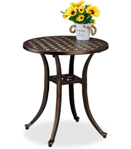 RELAXDAYS - Tavolino da Giardino, Tavolo Rotondo da Balcone, HxD: 53x49 cm, Mobile in Alluminio da Esterno, Nero Bronzo