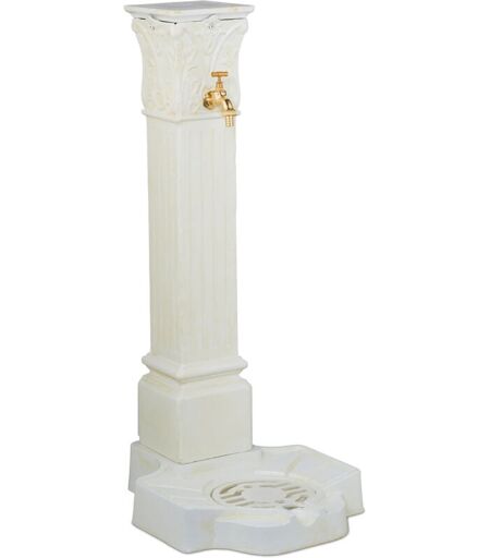 RELAXDAYS Fontana da Giardino in Stile Antico, Fontanella a Colonna con Rubinetto e Vaschetta, hlp: 93x47x38 cm, Bianco -