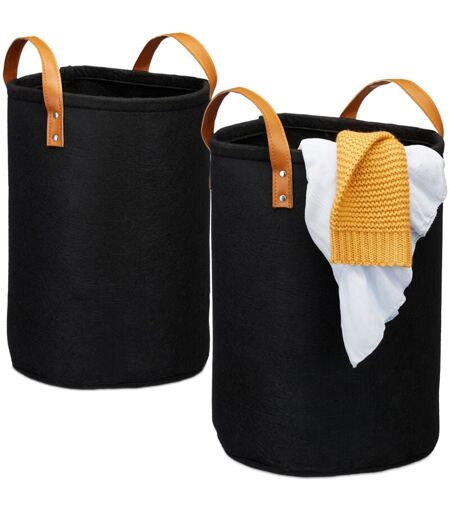 RELAXDAYS Cesto Portabiancheria da 28 l, Set 2 Cestini Porta Biancheria in Feltro con Manici, Bagno, HxD: 47x30 cm, Nero -
