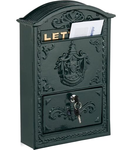 RELAXDAYS - Cassetta Posta, Design Antico, Porta Lettere A4, Casella Postale in Ferro e Alluminio, 42x28x10 cm, Verde Oro