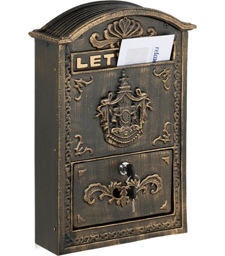 RELAXDAYS Cassetta Posta, Design Antico, Porta Lettere A4, Casella Postale in Ferro e Alluminio, 42x28x10 cm, Bronzo Oro