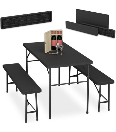 RELAXDAYS Tavolo da Birreria con Panche, Set da Giardino con Panchine e Tavolino Pieghevoli, Mobili Stile Rattan, Nero -