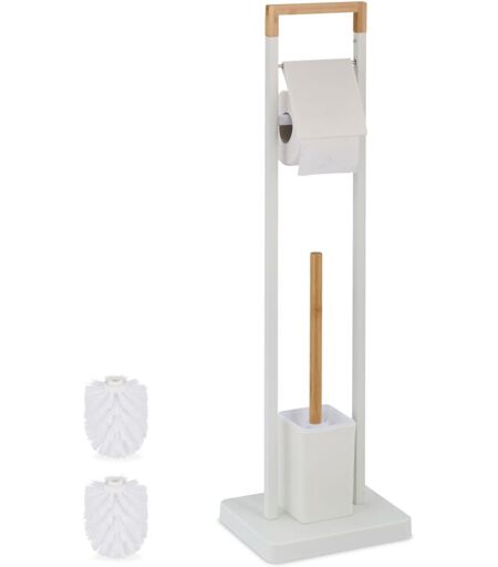 RELAXDAYS Piantana Portarotolo e Scopino, Portascopino Bagno, Carta Igienica, Supporto Acciaio e Bambù, Naturale Bianco -