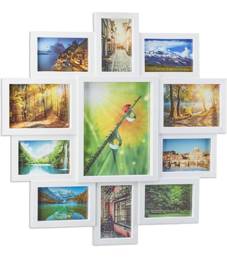 RELAXDAYS Cornice per 11 foto, porta-fotografie multiplo, collage multifoto da appendere, a più foto, bianco