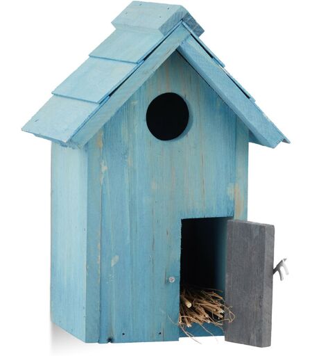 RELAXDAYS Nido artificiale casetta per uccellini legno, appendere, porta piccola apertura hlp: 24,3 x 17 x 12 cm, celeste -