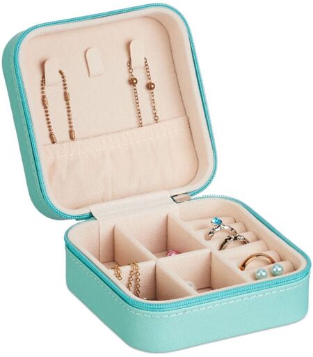 RELAXDAYS Valigetta Portagioie, Cofanetto Porta Gioielli Viaggio, Organizer Anelli e Collane, 5 x 10 x 10 cm, Turchese -