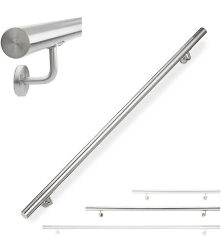 RELAXDAYS Corrimano, Acciaio Inox 304, Passamano per Ambienti Interni e Esterni, 150 cm, ø 42 mm, con Supporto, Argento -