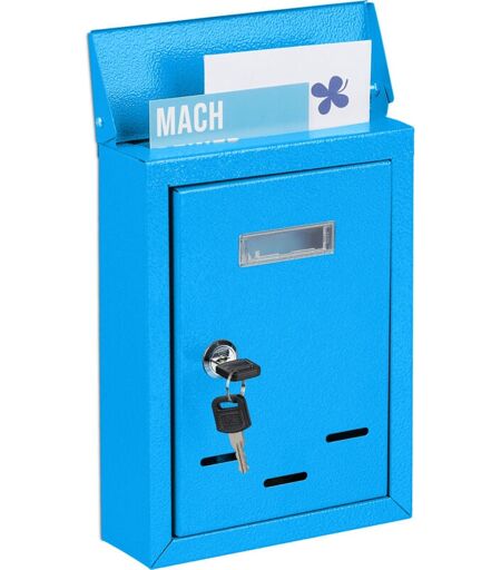RELAXDAYS Cassetta della Posta con Targhetta, Metallo, 2 Chiavi, Casella Postale, Buca Lettere 26,5x19x6,5 cm, Blu -