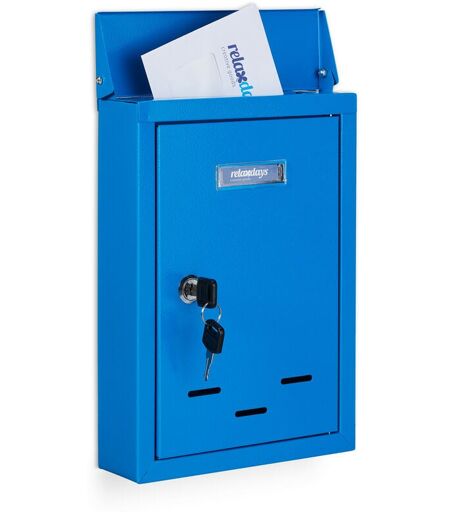 RELAXDAYS Cassetta della Posta con Targhetta, Metallo, 2 Chiavi, Casella Postale, Buca Lettere 30,5x21x7 cm, Blu -