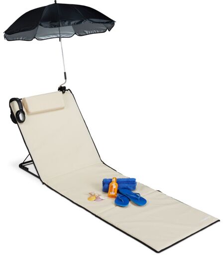 RELAXDAYS - Materassino da Spiaggia, Lettino Imbottito xxl, Ombrellino, Regolabile, Cuscino&Borsa, Pieghevole, Beige