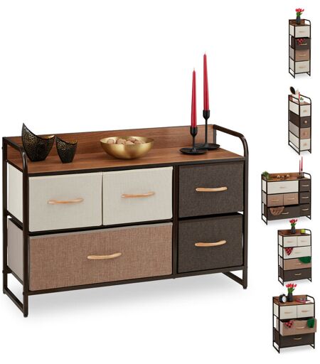 RELAXDAYS Mobiletto con Cassetti, 5 Tiretti Pieghevoli in Tessuto, Ripiano, hlp 58 x 87,5 x 31,5 cm, Marrone -