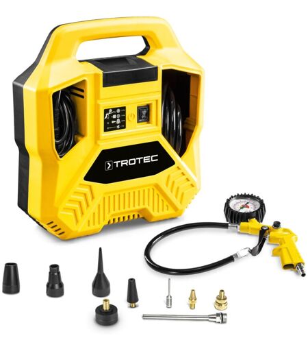Il compressore PCPS 10-1100 è lo strumento ideale per mantenere il livello di pressione ottimale. Con il potente motore da 1.100 W, una pressione massima di 8 bar e una vasta gamma di accessori, questo compressore senza olio rappresenta la soluzione domestica ideale non soltanto per gonfiare le gomme dell'auto ma anche per le ruote di moto e biciclette, palle, materassi gonfiabili e molto altro. Controllare la pressione degli pneumatici dell'auto prima di partire per le vacanze, gonfiare le gomme completamente sgonfie della bicicletta a inizio stagione o il pallone prima della partita: con il potente compressore PCPS 10-1100 della Trotec questi compiti non costituiscono un problema e possono essere eseguiti con facilità e direttamente da casa. Evitate di recarvi fino al distributore più vicino, che vi farà perdere del tempo e magari trovate anche il manometro casualmente fuori servizio proprio quando ne avete bisogno. Con il PCPS 10-1100 potete anche evitarvi lo sforzo necessario per ...
