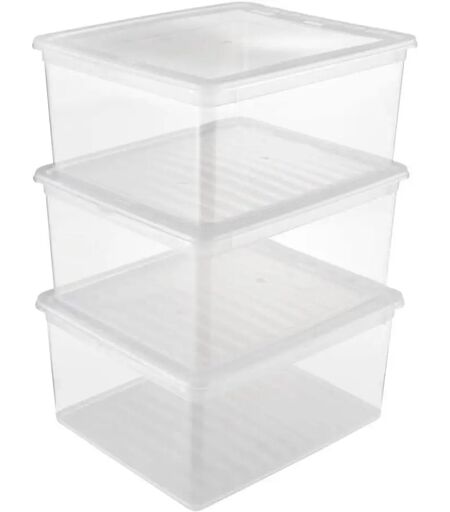 Set scatole portaoggetti 3x18 L, plastica, trasparente naturale, 39 x 33,5 x 18 cm KEEEPER ...