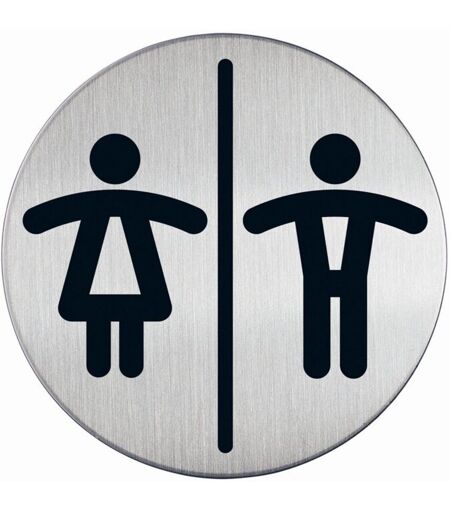 Durable 492023 - Pittogramma tondo, adesivo, con simbolo serigrafatoWC donne/uomini, acciaio inossidabile, diametro 83 mm, argento metallizzato -