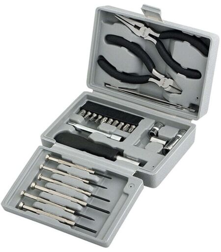 Un set di strumenti universale in una pratica custodia in plastica dura. Il set di strumenti contiene: - 6 diversi microcacciaviti - 1 taglierina laterale - 1 pinza - 1 cacciavite con prolunga - 10 punte (PH1;PH2;PZ1;PZ2;5;6;T10;T15;T20;1 adattatore)< br />- 4 bussole esagonali (5 ;6;8;10mm) - 1a pinzetta ...