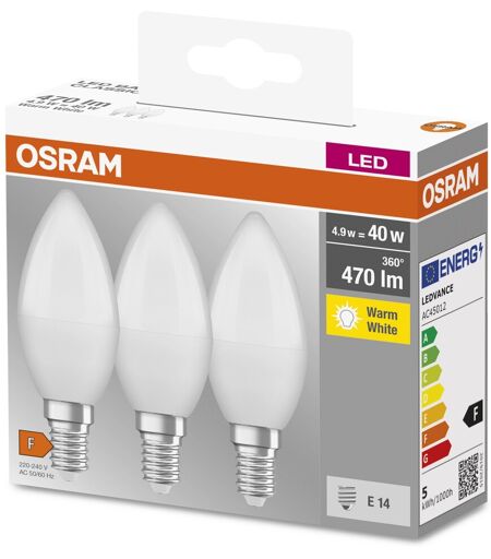 Osram General Lighting Lampadine LED E14 forma a candela Osram bianco caldo 3 pz
