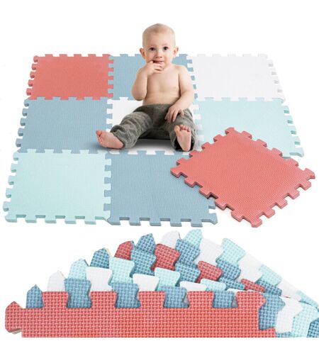 Tappetino puzzle da 9 pezzi per bambini e neonati dal 1° giorno Trasforma i pavimenti in zone di gioco morbido Il puzzle di schiuma di circa 1 cm di spessore è extra isolante - ideale per giocare su pavimenti freddi e duri. 9 tappetini in schiuma resistente - Ca. 30 x 30 x 1 cm per pezzo di puzzle 100% senza plastificanti Come richiesto dalla legge, i tappetini sono naturalmente privi di plastificanti (BPA), formammide e ftalati. Superficie antiallergica Non solo per il parquet - anche come tappetino da gioco sul tappeto: i tappetini in EVA ad alta densità proteggono in modo affidabile i bambini dalla polvere e dagli acari della casa. - Materiale: 100% schiuma EVA (gommapiuma) Capacità motorie e creatività fin dall'inizio Per un tappeto puzzle XXL, il tappetino è espandibile all'infinito, i denti in forma d'onda forniscono una presa senza vuoti. Con profilo antiscivolo Perché un po' di presa rende tutto più facile: perfetto per imparare a gattonare o come tappetino anticaduta per i ...