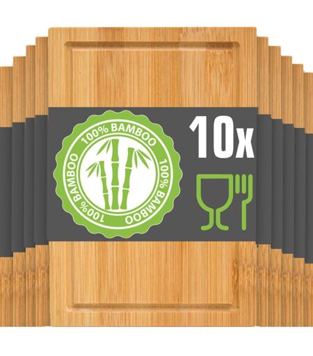 Maneggevole, elegante ed estremamente versatile Che si tratti di una baguette con uovo o di pane con pomodori: sui taglieri spessi di 8 mm (!) puoi creare la tua colazione preferita come vuoi. Un'attrazione sul tavolo Per tapas e antipasti, come tagliere per salumi o formaggi : questi eleganti taglieri mettono in risalto tutto - e il tuo spuntino diventa un evento. 10 taglieri in bambù - Ogni tagliere misura circa 22 x 15 x 0,8 cm - Scanalatura continua di circa 6 mm Il legno di bambù è extra resistente - ma sempre delicato con i coltelli . Perfetto come: - Tagliere per la colazione - Tagliere per snack e servizi - Piccolo tagliere Indispensabile come piccolo tagliere Ideale se devi tagliare velocemente una cipolla : questi piccoli taglieri da cucina sono sempre a portata di mano - e dopo il taglio sono anche rapidamente puliti. Protezione dalla contaminazione incrociata Per carne, pollame e pesce devi sempre utilizzare taglieri separati. È molto più facile se non usi solo un grande ...