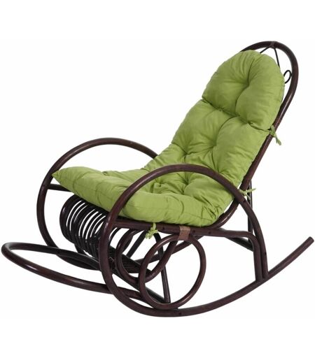 HHG - Sedia a dondolo classica elegante 648 139x58x110cm legno seduta poliestere cotone cuscino verde