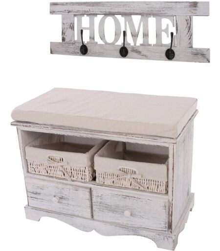 HHG Panca cassettiera shabby vintage con attaccapanni 42x62x33cm home legno di paulonia bianco