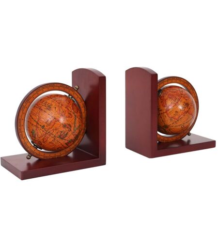 HEGELE Set 2x fermalibri mappamondo antico HHG-526 mdf plastica marrone